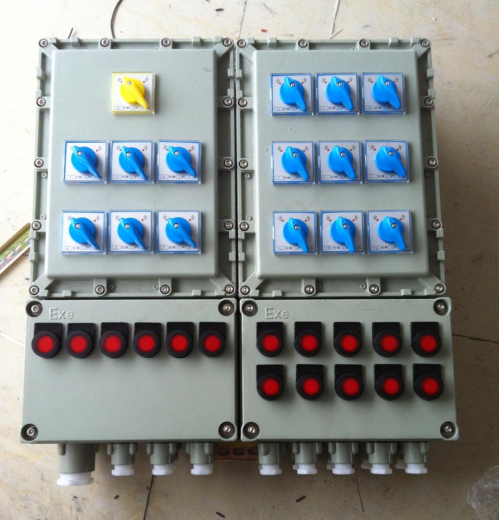 1.2路防爆照明配電箱 25A防爆控制箱為復(fù)合型,開關(guān)箱采用隔爆型結(jié)構(gòu),母線箱及出線箱采用增按型結(jié)構(gòu)。